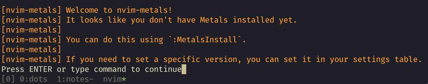 require("lspconfig").metals.setup{}cs install metalsvim.keymap.set("n", "K", vim.lsp.buf.hover)or handle special